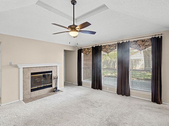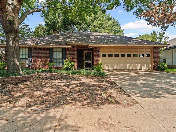 HIGHEST AND BEST OFFER BY 3PM SATURDAY SEPT 13. This lovely brick home with front entry 2 car garage offers 3 bedrooms and 2 fulls baths. The living area has vaulted ceilings, a wall of windows to enjoy the backyard and a fireplace with mantle ready to decorate for the upcoming holidays. Off the living you'll find the connected dining space and galley style kitchen offering ample cabinetry, an electric range, microwave and dishwasher. Off the dining space you'll find the laundry with garage access perfect for bringing in groceries. The primary suite has a vaulted ceiling, dual sinks and large step in shower along with built-in's for more storage, and a walk-in closet. The other bedrooms share the second bathroom with tub shower and both have walk-in closets. There is an additional closets can ben found off the hallway and entry. There is even more storage area in the garage. The property is covered with huge shade trees and has a large backyard with storage building for lawn equipment. There is also a partially covered patio perfect for quiet mornings.