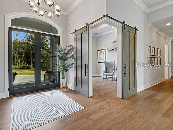 Built in 2020 and maintained to the highest standard, this custom Port Royal residence offers exceptional quality, thoughtful design, & effortless livability. Situated on a rare .77-acre homesite overlooking the 11th fairway of the Barony Course, the setting is both private and picturesque.The main level is designed for comfortable everyday living, featuring a serene primary suite w a spa-inspired bath, 2 beautifully appointed guest suites, a private office, and a well-planned laundry room. Upstairs, a spacious bonus bedroom w full bath provides ideal separation for guests or extended family.At the heart of the home, a gourmet kitchen with an oversized island, generous dining area, and beverage coolers opens seamlessly to the outdoors through collapsing doors. A screened porch, grill porch with rocking chairs, and an extraordinary backyard create a true indoor-outdoor lifestyle.The heated and cooled private pool, fire pit, and bocce court transform the .77-acre property into a personal retreat - perfect for quiet evenings or gathering with friends. This is a compelling opportunity in Port Royal, where lot acquisition and new construction would exceed this investment today.