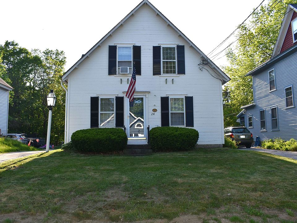 Step into timeless charm w/this enchanting 3-BR 1858 New Englander where classic craftsmanship meets modern comfort. The home exudes warmth w/abundant natural woodwork throughout. The den, a post & beam masterpiece, features custom pine glaze built-ins, creating an inviting atmosphere. The kitchen, adorned w/pine cabinets & oak floors, seamlessly blends rustic charm with functionality. Adjacent to the kitchen is the dining area, showcasing pine floors and a built-in china cabinet, perfect for family meals & entertaining. Continuing through the lower level is the living room w/even more built-ins & a ½ bath under the staircase. Upstairs you'll find 3 bedrooms and a full bath, along w/an unheated finished attic space, offering endless possibilities for storage or creative use. Outside, a covered patio invites you to enjoy the outdoors in any weather, for relaxation or grilling. The property also includes a detached garage w/apartment above. This charming living space features a loft bedroom & a smaller downstairs bedroom, kitchen w/custom cabinets, a cozy living area, & bathroom—ideal for guests, extended family, or rental income, currently rented w/a year’s lease. The property is situated close to town in a friendly neighborhood w/sidewalks, perfect for evening strolls downtown which is brimming w/activity in summer & fall. The elementary school is located 1 house away, making this an ideal setting for families. Showings begin at open house, Sunday 5/26 from 10am – 1pm