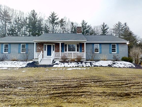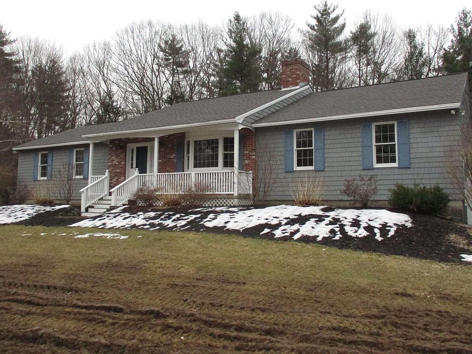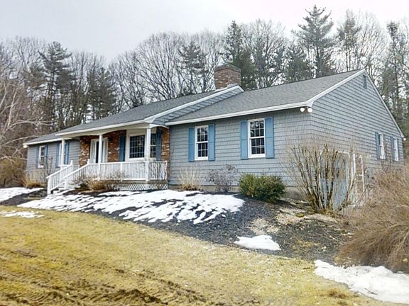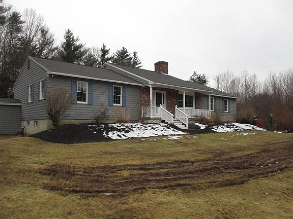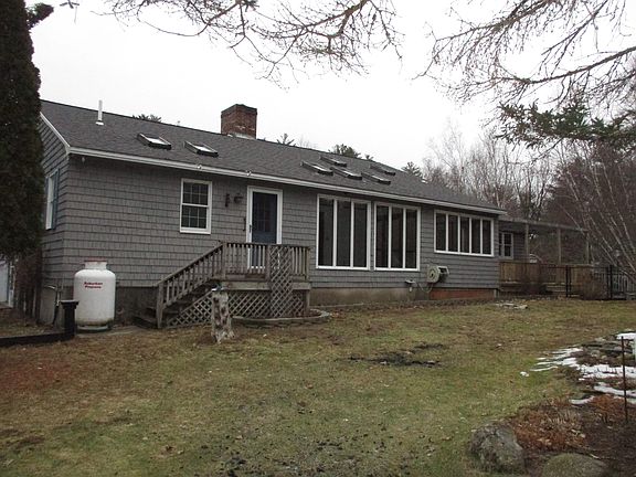 Location, Location, Location. Many possibilities with this impressive 8 room, 2-3 bedroom, 2 bath Ranch. Open concept design with large living room with hardwood floors, cathedral ceiling, wood stove & built-ins. Large kitchen with cathedral ceiling, brick hearth with an additional wood stove. 2-3 bedrooms. Tiled skylit sunroom. 3-season room. Extra large rear deck, partially fenced yard, garage and outbuilding, all located on 6.2 acres. Check out the video.