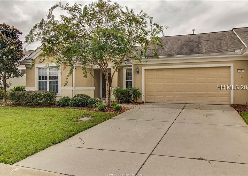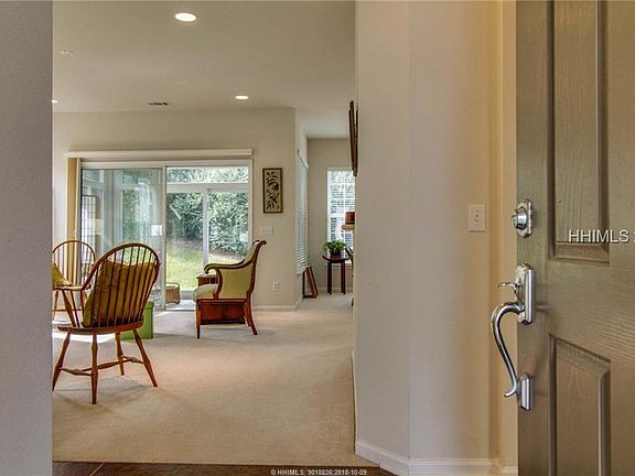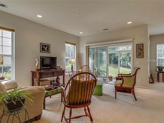 This property is in Beaufort County. Beautiful move in ready Robin model end unit open and airy floor plan with formal dining area and eat in kitchen with cherry cabinetry. Features a fully enclosed sun room. (not just screened). Pull down floored attic, 2 car garage with golf cart space. New HVAC in 2017. Convenient to back gate and Town Center.