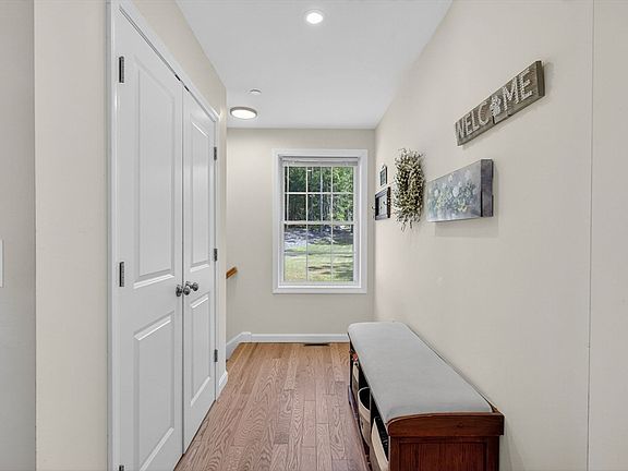 Nearly new construction end unit townhouse with three bedrooms, three bathrooms, a two-car garage and thoughtful updates throughout. The primary floor features a bright kitchen with white cabinetry, granite countertops and a convenient matching island with an overhang for additional seating. Just off the dining area is a large open concept living room filled with large windows to let in the natural light. Also on the primary floor is a half bathroom leading to a convenient first floor laundry closet and a mudroom area with a large coat closet. The second floor boasts an oversized primary suite with three closets and a beautiful ensuite bathroom. Additional upgrades and features for this, like new, condo include a large finished two car garage, a spotless unfinished utility room and central AC all situated in the desirable Timber Ridge East condo community which borders 26 acres of open land and where the monthly fee covers, landscaping, snow removal and trash pickup.