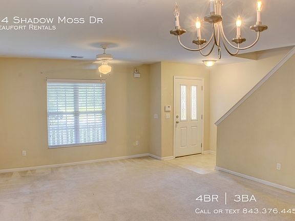 SCHEDULE A SHOWING ONLINE AT: showmojo.com/lh/db938eb09c Beautiful 4 bedrooms and 2.5 baths with a spacious floor plan in Shadow Moss. Very close and convenient to Beaufort Marine Corps Air Station, Parris Island Recruit Depot and Beaufort Naval Hospital. Spacious floor plan. 2 car garage. Formal dining room. All appliances are present including a washer and dryer. ** ** Disclaimer ** 1. *Bonus Amenity Included* A portion of the resident's total monthly amount due will be used to have HVAC filters regularly delivered to their doorstep under the Utility & Maintenance Reduction Program. This saves 5-15% on your energy bill and helps ensure a clean, healthy living environment. 2. Tenants are required to view the property prior to lease signing and unfortunately, we can make no special arrangements to rent a property sight unseen under any circumstance. 3. Tenants are required to maintain renter's insurance during their occupancy. 4. All payments for rent and other fees must be made online and are subject to a fee.