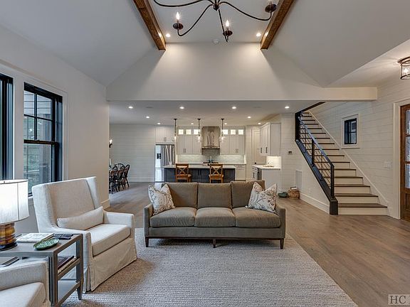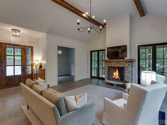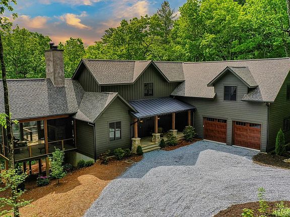 There is true "work from home" ability with a home office area and WiFi boosters throughout the home for internet reach even to the porches. This absolutely stunning home with modern, magazine worthy finishes has been thoughtfully designed for living in 2022. The entry foyer welcomes you with beautiful hardwood floors, high ceilings and open-concept floor plan. Just off the foyer is the living room with large windows that let in the natural light. Entertain family and friends with the cooks kitchen (featuring a Bosch-appliance-suite) that is open from the great room to all three porches. The living room room with stone clad fireplace (and gas starter) is flanked with large glass French doors that open onto the screened-in porch and views overlooking the backyard. This SMART home has everything. Enjoy state of the art Sonos music streaming throughout the home. Speakers are located in the great room, all porches, primary bedroom and bath. Wired for surround sound in the upper level 'movie area' with 75 inch Samsung Smart TV. Another Samsung TV with sound bar is in the living area.Heated marble floors in the primary bath, with separate rain shower and free standing soaking tub (also with Samsung TV). The Ring doorbell will allow you to speak directly to delivery people or tradespeople when you are anywhere in the world. Download the app that allows you to open the garage doors remotely (for delivery security/ to let tradespeople access the home without giving them a key). Live behind the gates of Sheep Cliff Woods. A small high-end enclave of homes in the coveted Big Sheepcliff area of Cashiers. 2 car garage, laundry/mud room/pantry off the main floor primary suite. Three bedrooms on the upper floor, two with en-suite bathrooms.Additional bonus room above the garage. Sold partially furnished (the owners are keeping the bed and the dresser in the Primary Bedroom.)