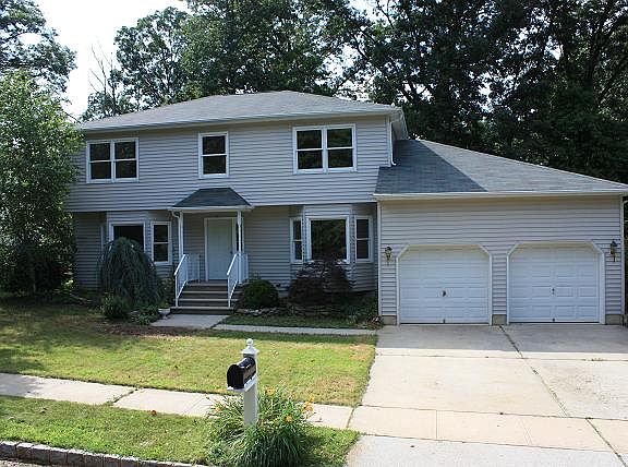 Beautiful Colonial on quiet cul-de-sac for rent. Short one block walk to NYC Bus. Master bedroom with walk in closet, 2 1/2 tiled baths, large kitchen with breakfast nook, family room with fireplace, living and dining room. This home has hardwood floors throughout and a sliding glass door that leads to a stone patio. The back yard is fenced and beautiful trees provide shade and privacy for summer BBQ's. There is parking for 2 cars off street plus a 2 car garage. Prospective tenants must complete an application. Credit and background checks required.