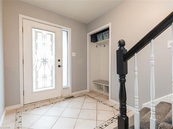FANTASTIC two storey home in great Westminister Park area. Elegant foyer & staircase open to formal living room or main floor office. Beautiful dining room great for entertaining. Updated kitchen with rich dark cabinets, appliances included & eating area with new patio door to lovely deck. Kitchen is open to family room with hardwood floors & lovely gas fireplace. Second level has three good size bedrooms. Master with hardwood floors, lovely bay window & walk-in closet. Two additional bedrooms with newer laminate flooring. Large lower level family room with new carpets & lots of room for kids to play. Large finished laundry room & three piece bath. Attached garage with inside entrance. You will love the beautiful private back yard & large deck great for warm summer evenings. This gorgeous home has many updates freshly painted, beautiful flooring & newer windows. Great area close to good schools, 2 playgrounds, community pool & splash pad. Easy access to 401 hwy. Just move in and enjoy.