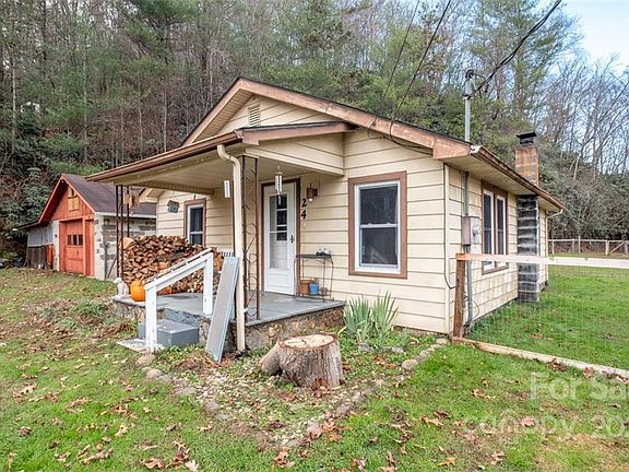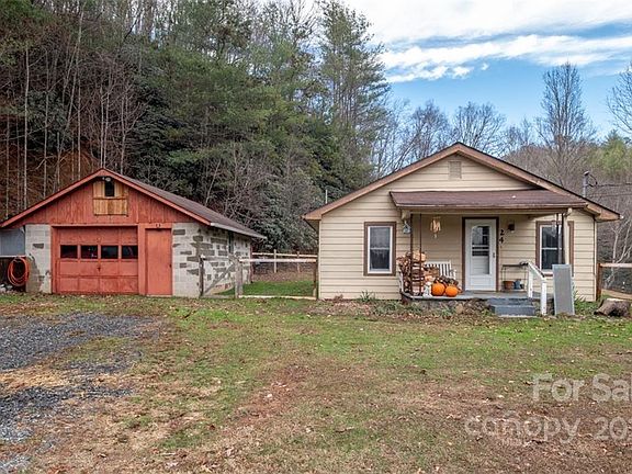 This small, cozy home and micro farm is part of Transylvania County's history. Built in 1945 it has been a place of memories for decades. Solid wood paneling and hardwood floors create a warm, welcoming feel, especially with the help of the wood stove - an ideal way for keeping winter heating costs down. If you're interested in a more self-sustaining life style or just enjoy growing plants and vegetables, there is ample flat land with good sun in the front and the back. The unrestricted parcel is also home to chickens, goats, and rabbits, and they all have their dedicated spaces and fenced areas. Livestock, fresh hay, and feed are available for sale outside of closing. Freezer and refrigerator in the garage do not convey. All other appliances convey.