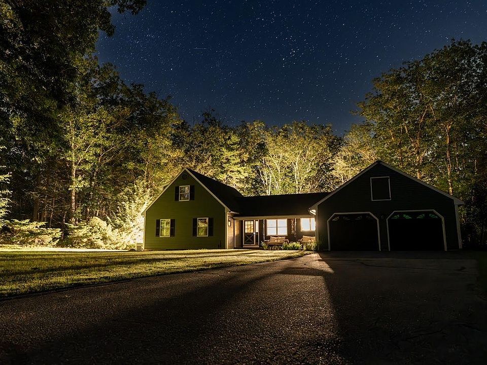 Perched on a hill beyond long vistas of fields and ancient stone walls sits a magnificent home. Warm, inviting, and newly renovated with every creature comfort in mind, this roomy property is the epitome of luxe. Appointed with its woodland surroundings in mind, enjoy rustic wood floors, a verdant green open plan kitchen and sitting area leading to a cozy gathering room with its own fireplace, all making for a unique and adventurous aesthetic. Relax in the three-season sunroom or under the outdoor pergola enjoying the nature all around you. The cook’s kitchen, featuring top-of-the-line appliances, is the heart of this beautiful home. A heated floor and an oversized quartz island, a nostalgia-styled dual fuel range with six gas burners, a drawer-style microwave, side-by-side paneled refrigerator, large farm sink, dishwasher as well as a trash compactor, makes this fully outfitted for your cooking enjoyment. The adjacent dining room comfortably seats 10. Included are modern smart-homes features such as lightning-fast WiFi and internet access to door locks, light switches, and security systems (which includes a Ring doorbell and perimeter cameras). The manor also has smart thermostats controlling the 4 heating zones. Mini-splits, which provide both heating and cooling in the upstairs bedrooms, are also WiFi controlled. A stand-by generator ensures that power outages do not disrupt the smart features or basic heating/lighting.