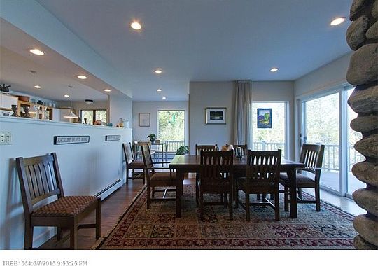 Spacious & private Contemporary with amazing views of Seal Harbor. Open floor plan with sunny living spaces, full deck off dining and living areas, lovely fieldstone fireplace in living room, 1st Fl. Master bedroom suite, office, separate guest quarters, large family room for billiards and media center. 200' of private shorefront with easy access to beach and water. Enjoy the peace & quiet of Rackliff Island or take a short drive to Rockland for great dining and entertainment. Regional airport in Owls Head.
