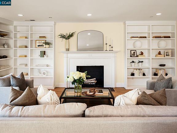Spectacular views and an easy walk to town distinguish this spacious property. The home was rebuilt from the studs in 2012. Inside, the centerpiece of life surely will be the immense kitchen, leading to an even-more-spacious family room. Skylights and recessed lighting brighten the kitchen, and cooking will be a joy using Wolf and SubZero appliances. An oversized marble island separates the kitchen and family room, which offers exceptional views of the hillsides separating Orinda from Berkeley/Oakland. An adjoining 325-sq.-ft. deck provides the ideal place to grill or enjoy wine at twilight, as wisps of fog hang over the distant hills. Nearby, the bookshelf-lined living room has a wood-burning fireplace to ward off winter chill, and the formal dining room will accommodate a large dinner party. The primary suite sits at the other side of the main level, with a spacious bathroom featuring an oversized shower and elite fixtures. Dual walk-in closets and a comfortable dressing room sit adjacent. A second large bedroom also is on the main floor. Three other bedrooms, and a recreation/playroom, lie downstairs. Newly refinished red oak hardwoods cover the home throughout. Outside, the manicured gardens enjoy the afternoon sunshine. This home exemplifies the best of Orinda life.