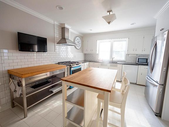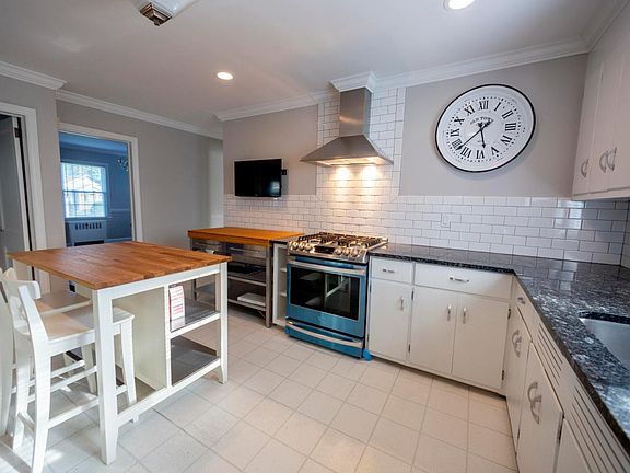 Situated on a quiet street this Lovely 2 bedroom first floor apartment is all on one level. The Newly remodeled eat-in kitchen has granite counters and new appliances. It is adjacent to the separate dining room with hardwood floors. The large living room also has hardwood floors and a fireplace. A 3 season covered porch overlooks the yard.1 garage parking/1 street parkingLaundry on premise.Central airIncluded in rent is grounds maintenance,snow removal, water and trash.Close to train and I-95ABSOLUTELY NO SMOKING AND NO PETS. MUST HAVE EXCELLENT CREDIT.