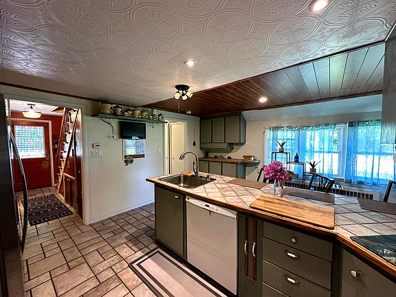 Welcome to this delightful 3-bedroom cape nestled on a private 1.03-acre lot. With its convenient location in town, Let's explore the features: Three spacious bedrooms provide ample space for your family or guests. Two full baths ensure comfort and convenience. Hardwood and tile floors throughout add warmth and durability. Large windows flood the home with natural light, creating a welcoming ambiance. No need to carry laundry up and down stairs—the first-floor laundry room makes chores a breeze. Relax and sip your morning coffee on the covered porch and Entertain friends and family on the patio in the lush backyard, and the large deck is perfect for outdoor gatherings and enjoying the serene surroundings. A 3-bay garage with storage above provides ample space for vehicles, tools, and more. Located on a dead-end street, this property offers tranquility and privacy.