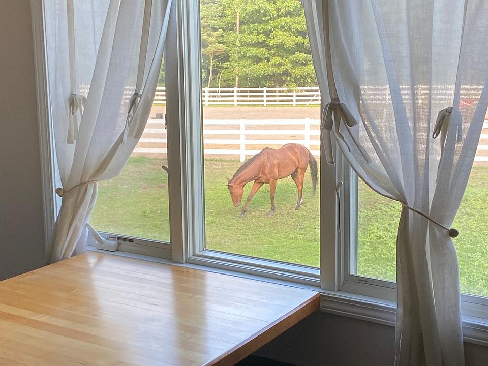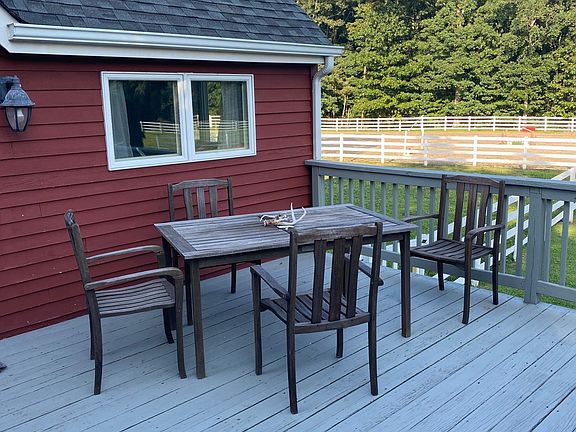 Beautiful horse farm, long tree lined driveway leads to the carriage house. Large deck, 2 story living with dining area, newer kitchen and bath, large upstairs living room and 2 bedrooms with closets. Garage laundry room exclusive use. Great views of surrounding farm and horses. Tenant pays electric, owner provides garbage removal. Utilities are $185.00 per month.