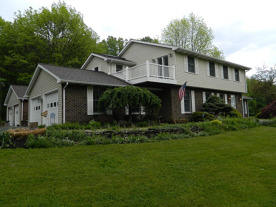 Stunning home with over 2,000 sq. ft. of living space & 2.8 acres of scenic views. Bright & airy family room with vaulted ceilings & wood fireplace, huge kitchen with SS appliances, double wall oven & center island, plenty of counterspace/storage, even a built in wine fridge! Beautiful outdoor seating area with pergola & built in benches, great for those summer BBQ's w/family. Spectacular views! Brand New Flooring throughout the entire first floor. Carpet and hardwoods have just been installed! Call for a private tour on this house today!