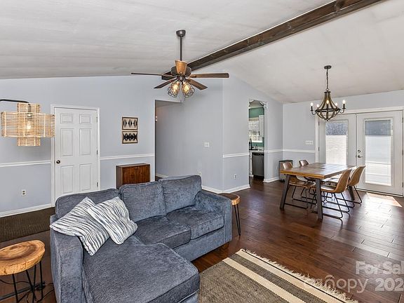 Open concept plan with a soaring 12’ vaulted ceiling . It’s airy, filled with light, and easy one-level living. The home is well maintained and located on a quiet cul-de-sac. You have a huge fenced back yard, plenty of room for a garden, chickens, dogs, your hammock, and more. Even better, subdivide and sell or build on the adjacent acreage. Buyer to confirm requirements. Yes, you can entertain, but you can also snuggle by the fireplace in the quiet of the country. Rich hardwood floors throughout installed in 2021. Fresh paint in several rooms. Bathrooms are tile floors. Washer/dryer convey. The driveway was scraped with new gravel in April. 18 minutes to Ingles. 30 minutes to Downtown Asheville. Come relax on the expansive grassy lawn. Add a fire pit, and create more happy memories. This is the place for your best life.