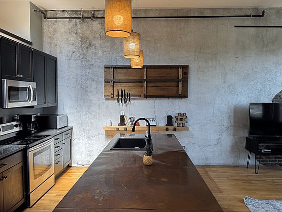 Full top floor in a 1911 brick building that was redeveloped into residential housing for the first time in 2016. Quiet building with only three apartments, one on each floor. High-end appliances and kitchen cabinets, beautiful architectural details, high ceilings, rooftop deck, exposed brick, and custom features restored from original use as a cigar factory. Copper counter tops, original hardwood floors, huge skylight, washer and dryer in unit, and air conditioning. Heavily insulated for efficiency and noise dampening. Large new windows overlooking State Street in Downtown Bangor. To setup a showing, please submit and application. Renter pays their own electricity.