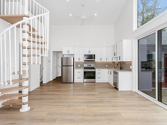 Large open main floorSpiral staircaseWide open bonus roomLake viewsPrimary bedroom with ensuiteVaulted ceilingVinyl plank flooring