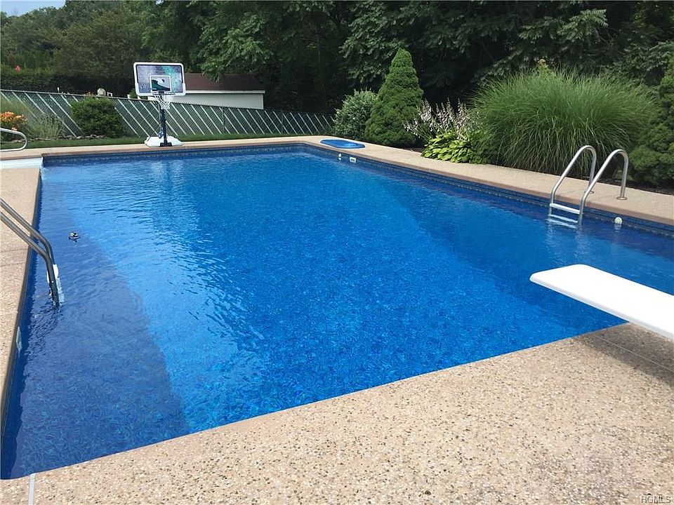 Walk in thru the double doors and into the large entry with warm and inviting color. This beautifully maintained 4 bedroom, 2 1/2 updated bath Center Hall Colonial has crown moulding downstairs, and hardwood floors thru out. The Living and Dinning room have bow windows. The Large Family Room has a gas fireplace, and the updated kitchen has stainless steal appliances, Pergo flooring, and a breakfast nook. Big mudroom with separate entrance. Upstairs has a huge skylight, Master bedroom has a walk in closet, and a beautiful new bathroom with double sinks, gorgeous tumble tiles, and seamless shower doors. Full finished basement with lots of storage. Beautifully landscaped property with under ground sprinklers, NEW IN GROUND POOL AND PATIO. There's also a huge deck with electric awning, perfect for entertaining, or large family. That's not all... 2 car garage, new driveway, new roof, new windows, new water softener, new hot water heater, and new shed. On almost an acre of level property.