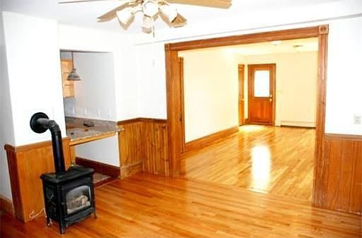 With lg fenced yard, private deck, & 4 car parking, this home offers no clue that it???s a townhouse-style condo. Updated kitchen has ss appliances, granite counters & radiant heated floor. Dining rm features gas "wood" stove & flows into a lg. living rm opening onto deck. 1st fl. includes 1/2 bath and separate laundry rm w/ sink & storage. 3rd floor has 2 lg. bedrooms & updated full bath. 2nd floor master suite has a sitting rm. w/ gas fireplace, big bedroom w/ windows on 3 sides, full bath, and office/den that could be a 4th bedroom. Original trim, doors and wide plank floors have been well maintained. Recent upgrades include many Pella windows, new roof, carpet, kitchen appliances & interior paint. 2 basements:1 w/ interior access for storage--another w/ systems. On private, unpaved, city-plowed rd. Feels like country w/ city amenities. Near restaurants, shops, parks, & pub.transport.. Elliot ???T??? stop is 15 minute stroll. Easy access to Routes 9, 128/95, Pike. This is a condo.