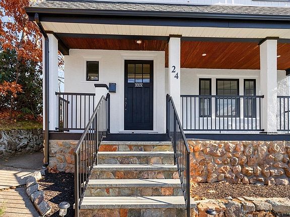Historic Wakefield Park. 1920 Stucco colonial beautifully renovated to a modern flair & elegance. Sleek entry foyer with iron railings mirrors the outside & is open to both the LR and kitchen. Fireplaced living room, formal dining room with original built -ins. Kitchen features quartz waterfall breakfast bar, GE profile SS appliances, gas stove & recessed lighting The abundance of oversized windows enhances the bright, airy interior. Refinished walnut stained hardwood throughout. Sited on a knoll the farmers porch has commanding neighborhood views. The 4 generous sized bedrooms include a primary bath beautifully tiled, granite double vanity & step in glassed shower. Fabulous 3rd floor game room includes cathedral ceiling with skylights & exposed beams. The white stucco & black exterior trim beckons a craftsman's period feel. 2 story barn/garage w/ finished loft & mini split. Renovation included: New roof, plumbing, windows, 200 amp electrical, mini splits, driveway and vinyl siding.