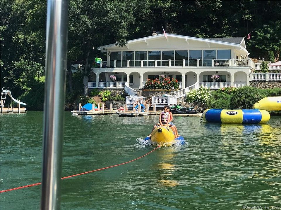 "Wow!" is the first word that comes to mind when entering this spectacular waterfront home, an absolute entertainer's delight. Only 90 min from NYC, a rare opportunity to rent a top celebrity chef's house on sought after Candlewood Lake & enjoy all the bells & whistles this special home offers. Whether summer, fall or winter, you will love the large, open concept living/sitting/dining area that is impeccably decorated w "breathtaking" lake views, even better in person. Take in the mile long views as you whip up a meal in a dream kitchen, appointed w top of the line appliances, 2 sinks, 2 islands, & full sized wine fridge. Main level flows onto a wraparound deck, leading to an unsurpassed, outdoor professional LYNX kitchen, large enough to host your entire extended family. Wood burning pizza oven, full bar, large grill, warming drawers, multiple burners, sinks, refrigerators, prep area, wine fridge-everything you could wish for++. Additional outdoor lounging space on the lower covered patio, directly off the finished family room, offering another fabulous high end bar w ice machine & dishwasher. Ample sleeping areas, w a king sized bed in all 5 bedrooms. Retreat to the master bedroom & enjoy another beautiful fireplace, and a jaw dropping master bath w steam shower that will literally transport you to "Game of Thrones". Owner will provide multiple paddle boards, kayaks, slide dock & other water toys to make it memorable for you & the entire family! Available Sept 15th-Jan 15th