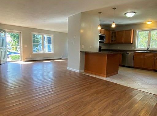 This 3 Bedroom, 2 bath Ranch is only 7 years young with freshly painted interior. Home features an open floor plan. Cabinet packed kitchen boasts Stainless Steel appliances & Breakfast bar open to dining rm which is open to 21x12 living rm. Main bath has full tub & shower. Master Bedroom boasts large closet & Master Bath w/ full tub & shower. Other 2 bedrooms have spacious closets & ceiling fans. The basement has a bar & is perfectly laid out to add your finishing touches (family rm/game rm/playroom). One side of basement has workbench, 2nd refrigerator & a Buderus boiler. Last but certainly not least is the beautiful flat lot w/ shed, firepit, stone fireplace, recent shrubs, 1 car garage & a swing hanging from the branches of a stately Oak tree! Stone wall, rose bushes & a Pear tree line the corner. Home is vinyl sided w/ covered front porch & eye-catching stone faade. Mins to shopping, schools, restaurants & major routes 20, 12, 290, 146 & MA pike. Showings begin at Open House.
