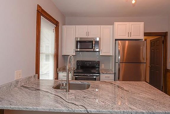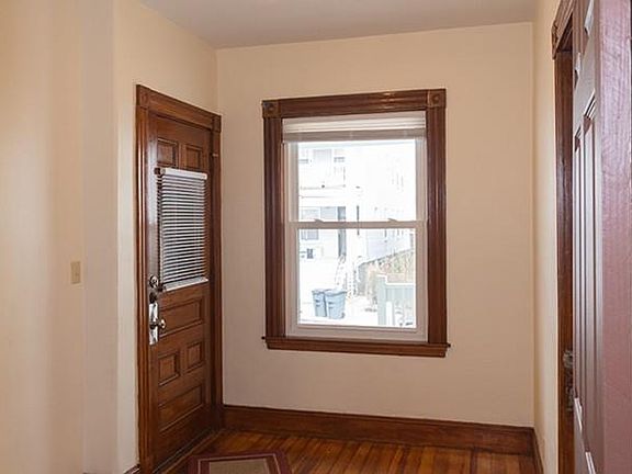 Large first floor apartment newly renovated with 4 bedrooms and hardwood floors through out to be finished and stained. Large entryway with plenty of room for coats and boots. Large sunny living room with beautiful molding. Large dining room or office with grand pocket doors. One large bedroom with 3 closets. Brand new kitchen with island, granite, stainless steel new appliances including a dishwasher. Large pantry for extra storage. Lovely new bath with gray bath and floor tiles. Deck off the back leads to common yard with plenty of room to grill and relax. Perfect location, walk to train station, lots of new restaurants and shopping in the area. Expressway is 5 minutes away. Call today!!