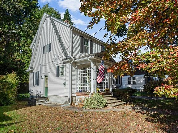 Beautiful Dutch colonial set on a quiet side street in a friendly neighborhood features loads of character. Cozy living room with hardwood floors and elegant wainscoting as soon as you enter - abundance of windows makes the space bright and airy! Entertainers take note! Dining room is ready for large gatherings. Nice sized kitchen most appliances stainless steel and exterior access. Half bath rounds out first floor features and adds convenience. Head up the charming staircase to the spacious master bedroom with hardwood floors, ceiling fan and two closets. Unfinished attic space accessible through master provides large storage possibilities, bring your design skills and ideas! Second bedroom has hardwoods as well. Just over half an acre of land with patio space for gathering while mature landscaping offers privacy. 4yr young roof with 30yr shingles. Most windows replaced (2011). 2 car detached garage with storage or workshop space. Quick access to Rt 146- 20 mins to Worcester/Prov