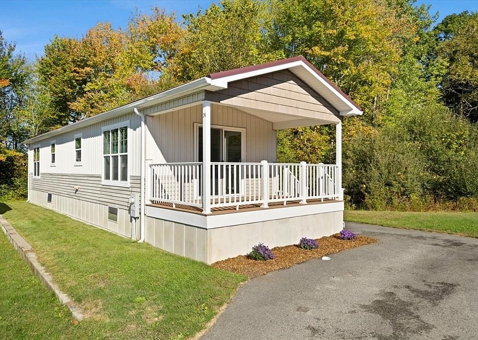 Welcome Home to 24 Tyler Avenue in a vibrant 55+ community, Located on a corner lot with stunning views of the wooded back yard in a well managed park. This mobile home offers an open floor plan with fantastic living space. This five year young home is completely updated, has a brand new water heater, fresh carpet in the bedroom, and has been very well maintained. Lots of closet space a large bedroom, laundry area, and updated bath round out this cozy home! Conveniently located with lots of amenities near by. When you add the beautiful porch, and spectacular location what more could you ask for? Seller says bring your offers!!