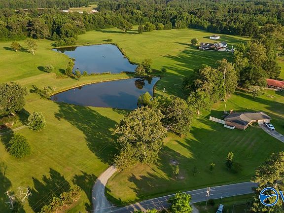 2 wonderful homes with workshop on a tranquil 13-acre setting just outside of Hartselle. Main home is a 4 bedroom, 2 bath full brick home (2100 sq. ft.) with views of pond and sunsets from the front porch. It has an open kitchen, dining and living room with fireplace and trey ceiling. A split bedroom design offers a private master suite with full bath and large closet. The front bedroom can be used as a formal dining room and the covered, screened patio off dining is a wonderful grilling area. The second home (845 sq ft) is 2 bedroom, 2 bath and doorways are handicap accessible. This home also has a fireplace. large closets and a screened back porch for viewing the rolling pastureland.