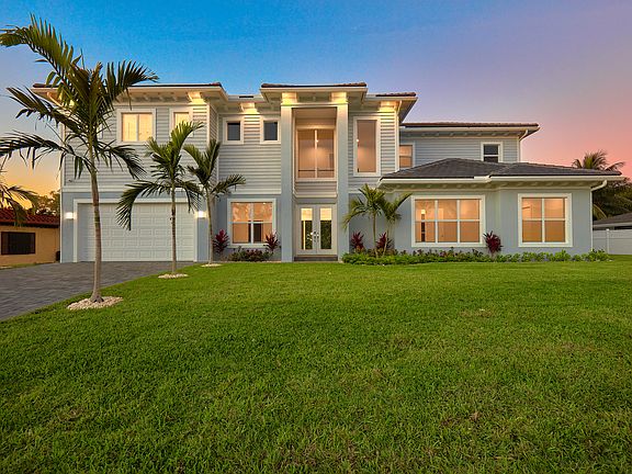 New construction only 5 years young! This beautiful waterfront home is only 3 lots to the Intracoastal Waterway with no fixed bridges to the Ocean. Meticulously maintained and outfitted to perfection by a critically acclaimed designer, the property offers plush furniture, unique lighting and graceful drapery along with plantation shutters throughout. Versatile floor plan with private elevator, first and second floor master suite options, den, flex space, open concept living and an outdoor space ideal for entertaining with views of the Intracoastal Waterway from the upper and lower levels. Bring your large boats and park right behind the house! No neighbors directly across the waterway. Elevator, 30lb boat lift and selling the home as is fully furnished. Bring your boat and your toothbrush!