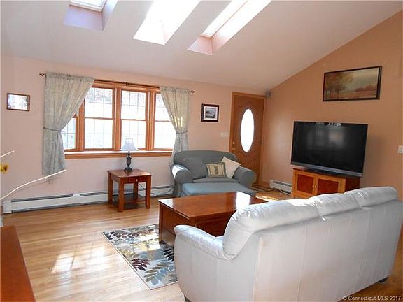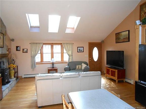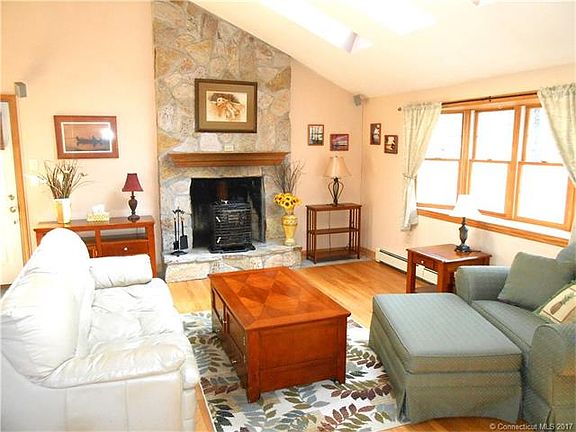 Looking for the perfect starter home or downsizing? You have found it in this very private 3 bedroom 1 bathroom ranch featuring hardwood floors throughout. Open floor concept with cathedral ceilings and skylights that flood the home with natural light. The floor to ceiling fieldstone fireplace is a stunning centerpiece especially during a chilly night. From the kitchen walk through the sliders to the deck and enjoy views of wildlife that comes from the woods surrounding the entire property. A brand new high efficiency boiler was recently installed as well. Welcome Home!