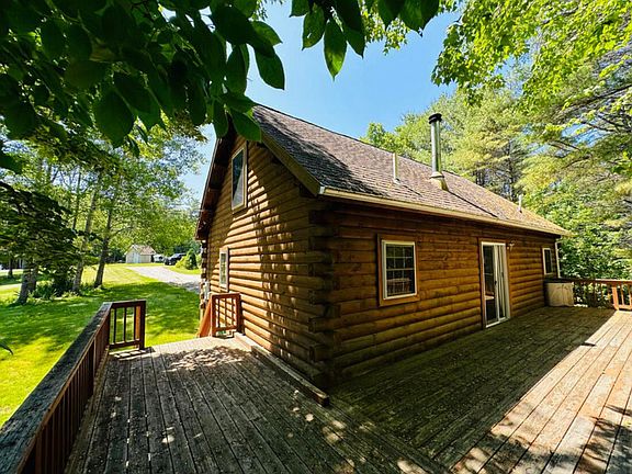 WATERFRONT LOCATION- Log Style home-Cabin with gorgeous exposed beam construction, featuring tidal waterfront on Bald Hill Cove. Unique open main floor design with one bedroom on the first floor and two upstairs between the catwalk! Open sliders and walk out onto the oversized deck overlooking the wooded, trailed backyard. Cozy on downstairs to the finished great room with walkout access. If a chill is in the air sit around the Propane Stove. Includes detached 2- Car garage with power on both floors. Partially finished room above; keep for storage or finish for additional living, fun space. The cabin is situated on a 2.5 acre flat to sloping lot. Follow the trails down to 315' of waterfront. Water is tidal,part of the Penobscot River Watershed. Fishing, bird, deer, nature watching, and boating can all be enjoyed. From spring flowers magical arrival, thru to the descent of vibrant fall leaves this location is a four season dream. Centrally located close to all, 20 minutes to Northern Light Medical, just over an hour to Acadia National Park.