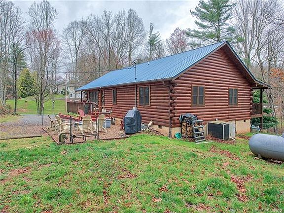 With the notched wood, beams and rustic appeal, log cabins stir a deep-rooted feeling in North Carolina history. If you yearn to have a woody structure in a small community with no restrictions and some extra land to play with, this may be your place. Use as a weekend getaway from the stress of life or have a year round residence - living all on the main level. This home features 1600+ square feet of simple yet sold home with comfortable 3 bed/2 bath, hardwood floors, full house length wrapping porch(large portion screened in), durable metal roof, fireplace and heat pump for heat and cooling. The main level features a spacious living area with leather seating, a unique and inviting dining area with windows on three sides and wonderful views of the surrounding forest as well as mountain view. Enjoy the extra lot for building or improving. Yard is fenced for pets and children can easily play in this yard. Plenty of parking and close to Waynesville and Asheville.