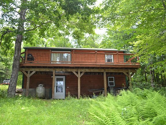 What a perfectly private spot to get away from everything. You will have plenty of space to do that with 50 acres and over 600+/- feet on Thorn Brook. The owners have always enjoyed swimming and fishing in the brook. This off- grid camp was built in 1989 and has a 1000 gallon septic tank and leach field, drilled well, propane lights, refrigerator and stove. On demand water heater and a 55 gallon tank for water storage. Home is wired for a generator. Open floor plan, living, dining area, bedroom and a full bathroom. Beautiful deck(9 x 24) that is well built and over looks the stream. Full, walkout basement with laundry area. Wood stove to keep you warm in the fall. The owners have added a camper for a guest house. You really need to see this one! New owner would need to bury well line and due some plowing to access in the winter.