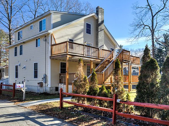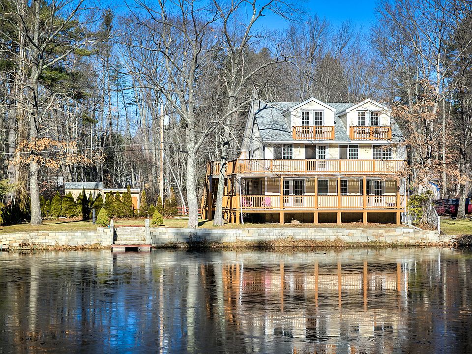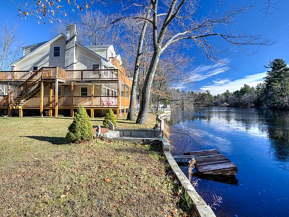 Expansive Contemporary Raised Cape on the Exeter River! Three finished levels with wrap around composite decks and porches where the owners enjoy relaxing, watching wild life and taking in the views of the Exeter River Front. Bonus! Finished Lower level features a small kitchenette, open living area, 2 guest spaces & 2 baths with Laundry facility. French Doors access wrap around covered deck area inviting in the sights and sounds of the waterfront. Hearths on 1st and 2nd floor may accommodate either Wood or Pellet Stove. Light filled Main Floor of this home features a spacious kitchen with breakfast bar, huge dining room and living room with views thru French Doors to the river allowing you to experience the serenity only waterfront living can bring. An additional bedroom/study/den and full bath with laundry hook-ups round off this level. 3rd level features spacious Master Suite with 3/4 bath, walk-in closet and sitting area with Juliette Balcony overlooking the river. Two other Bedrooms, one with Juliette Balcony, finish off this level. Waterfront side yard with firepit is the perfect place to bar-b-que, picnic and breathe in fresh air & enjoy sun and fun with family and friends! Extra lot across the street with storage shed and small barn as well as space to park the cars, grow a garden or raise some chickens. So many possibilities for the savvy Buyer. Great location for commuters with easy access to Route 125 and Route 101!