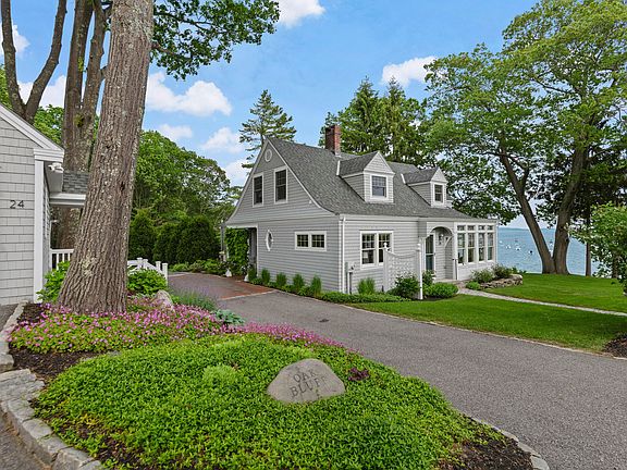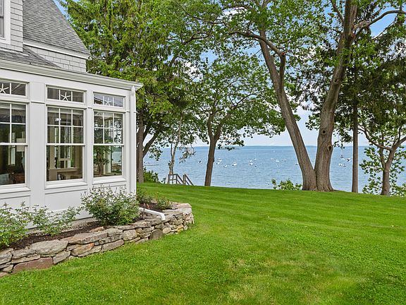 Welcome to Oak Bluff—an exceptionally maintained and truly special waterfront property perched at the end of Town Landing Road in the heart of Falmouth Foreside. Facing the iconic Falmouth mooring field, this charming home offers breathtaking water views from nearly every room and embodies the coastal Maine lifestyle at its most timeless. The main house features three inviting bedrooms on the second floor, while a detached guest studio with full bath and kitchenette offers wonderful privacy for guests or additional creative space. A separate two-car garage complements the thoughtful layout. Lush gardens, mature trees, and a gently sloping lawn lead to a private stairway to the beach, perfect for launching kayaks, watching the boats, or simply taking in the ever-changing seascape.The setting is both peaceful and convenient: walk to the beloved TownLanding Market for fresh lobster, a gourmet sandwich, or your morning coffee. Stroll to Portland Yacht Club or Dockside for sunset cocktails and community gatherings. With a serene sense of privacy and easy access to everything Falmouth has to offer, this is a rare opportunity to own a landmark home in one of Maine's most treasured coastal neighborhoods. Properties like this come along only once in a generation. Oak Bluff is not just a home, it's a legacy.
