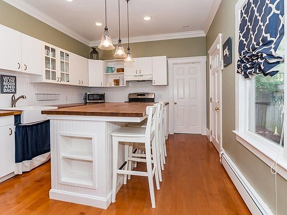 Just off Monument Square, this sun-drenched 2 bedroom home [but currently being used as a larger 1 bed] offers historical detail and charm along with today's modern amenities. Large eat-in gas kitchen with plenty of cabinetry and a butcher block island opens onto a private patio, which is perfect for summer and fall gatherings. Living room and master bedroom offer original marble mantels and moldings, wainscoting, high ceilings and pumpkin pine flooring. This home also features oversized windows with custom plantation shutters and a spacious bath as well as private washer/dryer and extra basement storage. Close to all that Charlestown has to offer, including public transportation, shops and restaurants, this home is perfect for city living!