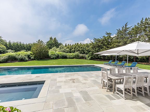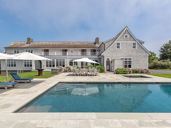 Set only 400 yards from the ocean amongst the grand and prestigious estates just South of Further Lane, this 10,000 square foot traditional gated estate is perched high on the rear of the 2 acre property producing a dramatic entrance and commanding ocean views from the second floor. Built by celebrity master builder Jeffrey Colle, who delivered a home that perfectly blends the class and elegance of Old World detailing with the comfort of modern luxurious amenities, the two level home consists of 7,000 square feet plus a 3,000 square foot walk-out lower level. The entire home is highlighted by antique 10 inch wide plank cypress floors, extensive millwork, coffered ceilings in the living and library, which both include fireplaces, professionally equipped kitchen with fireplaced family room and enclosed porch with arched doorways. The master suite includes a dedicated wing of the home that features a bedroom with fireplace, his and her baths, a fireplaced sitting room and old fashioned covered sleep porch, both with ocean views. The extensive wood working details continue outside with wainscotted porches and elevated broad balconies that overlook a heated gunite pool with separate spa, har-tru tennis court, and mature landscaping that includes large Montauk shad trees, perennial gardens, butterfly bushes, and flowering grasses. A finished 3,000 square foot English walk-out lower level with soaring ceilings and staff quarters along with an attached three car garage add additional luxury amenities on this truly magnificent offering.
