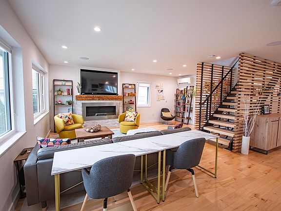 Modern marvel! This smart home has all the bells & whistles! 2016/17 new construction. 4 bed 4 bath designed to be passive & energy efficient. Enter into a welcoming foyer with double closets and radiant heat floors. Open living room w/ fireplace & library nook. Chef's kitchen w/ quartz countertops & island. Brilliant cabinet design & double door pantry. Dining area off of the kitchen accesses deck & backyard, and 2023 patio.1st floor bedroom or office space w/ full bathroom completes the main floor. The primary suite is luxurious and restorative space. Walk-in closet, spa like bathroom w/ soaking tub, glass enclosed shower, double vanities, separate water closet w/ Toto toilet. 2 additional bedrooms & a full bath round out the 2nd floor. Lower level den w/ wet bar, full bath, home theater, exercise room, & laundry. 3rd floor offers another flexible space / playroom & eaves storage. Perfectly positioned - steps to Town Field, schools, library, pool, & Center. Don't miss this one!