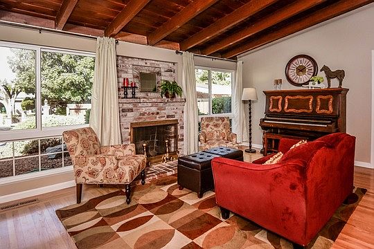 Charming single story home with Great flow! Updated kitchen, hardwood floors, wood beamed ceilings, 4 beds/2 baths, and more!Large bonus room and 4th bedroom bedroom has separate entrance, and parking! Large/flat yard has inviting deck, beautiful mature trees, and private setting! Open Sat/Sun 1-4p