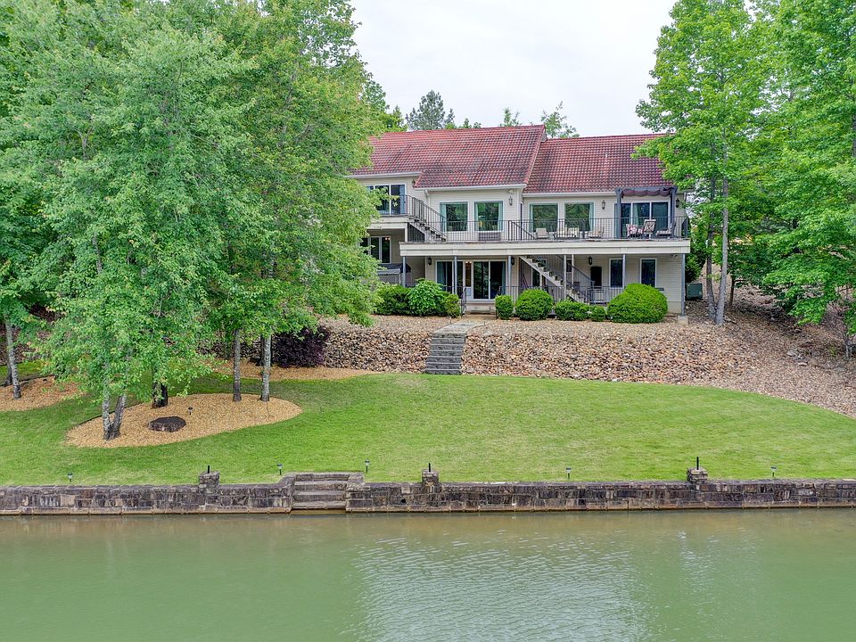 Showcase 4 bed 2 & 2.5 bath 3555 Sq. ft. Contemporary overlooking 110 ft. of stone sea wall on Lake Granada. Bright, Open, Vaulted Spaces with Walls of Windows showcasing the water. Handsome custom maple cabinetry & engineered maple floors. Large island kitchen with double convection ovens. Full formal dining & eat-in kitchen with lake views. Large comfortable second living with wet bar & pool room. Easy walk to the water. 1/8" light weight steel shingles, circular drive,sprinkler system & much more...