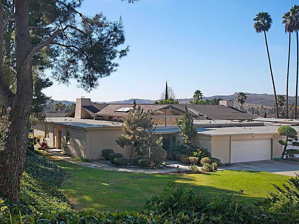 Very private twin-home that lives like a single family home. One of only 4 single story homes in the whole complex. Room for kids play area, out-of-town guests, even a caretaker or room rental. Entertainer's dream! Away from the crowded city. Located in quiet gated Bonsall community. Extra large home situated on the largest lot in the complex. Large rooms with access to atrium or patio. Every bedroom has it's own bath, dressing area & walk-in closet. All white kitchen with corian counters, marble tile... floors & black appliances. Huge fully enclosed, tiled atrium/great room. Every bedroom is a master bedroom. Big living room with fireplace. Fully separate laundry in the 2 car garage that has work counter and cabinets galore. Plenty of storage. Driveway has enough room for 4 visitors cars plus no one on the other side of the street. Huge common grassy area for backyard but you don't mow the lawn. Lots of privacy with large front yard as well. Beautiful large swimming pool and lounging area with bath house but you don't have to clean and keep the water clear. Lots of paved walking areas and you can even watch the horse exercise in the morning at San Luis Rey Downs below the bluff. Community fruit trees and video monitoring gated entrance. Breakfast and coffee on the covered patio or in the enclosed atrium with open or closed windows. HOA covers exterior maintenance, landscaping of lush grounds, pool, termite, insurance, water, sewer, trash pickup, tree trimming and gate & road maintenance.