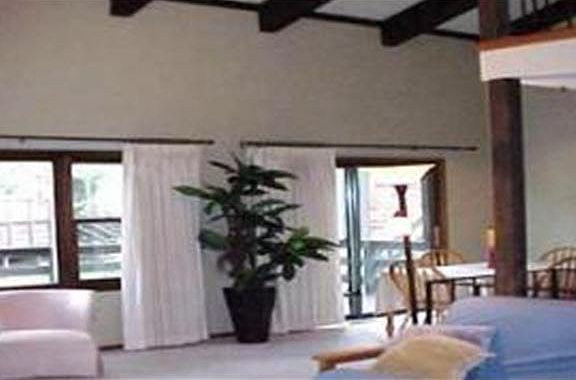 - Description: Vaulted beamed ceiling and brick firepla