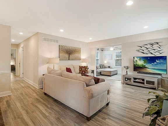 Beautiful move-in condition, Holiday Village 2nd floor, two-bedroom, two full bathrooms condo with over 1,200 sq. ft of living and storage space. This unit has Southeast exposure and is nestled amongst mature trees and manicured landscaping. It contains new laminate flooring with 6-inch baseboard trim throughout, recessed lighting in kitchen, living room, and hallway. Newly painted walls in neutral colors with modern switches and receptacles, and 2-inch faux wood cordless blinds on all the windows. Ceiling fans in the den and bedrooms, six-panel doors with brushed nickel locksets, separate laundry room and pantry, updated bathrooms with new vanities, mirrored medicine cabinets, and seat height toilets. Brand new shaker style kitchen cabinets with granite countertops and under-mount sink with spray faucet. Year old (GE and Whirlpool) appliances that include a stainless-steel gas range with convection oven, vented space-saver microwave, dishwasher, and counter-depth French doors refrigerator with ice maker, cold-water dispenser and pull-out freezer. The master bedroom is bright, has two closets, and contains a full bath. Televisions and mounting brackets and washer and dryer included with sale if desired. Economical living with PSE&G bills averaging less than $100 a month. This 53+ age community is the perfect place for active adults to relax. A convenient location with a variety of activities makes Holiday Village a popular and desirable destination. Amenities at Holiday Village include a clubhouse containing a fitness center, an arts and crafts room, cards room, billiards room, shuffleboard table, large screen television, library and a ballroom for community social events. Enjoy swimming, playing tennis, pickleball, horseshoes, bocce ball, or the chipping and putting green, all within a stone’s throw of each other. The home association looks after the snow removal and lawn mowing.
