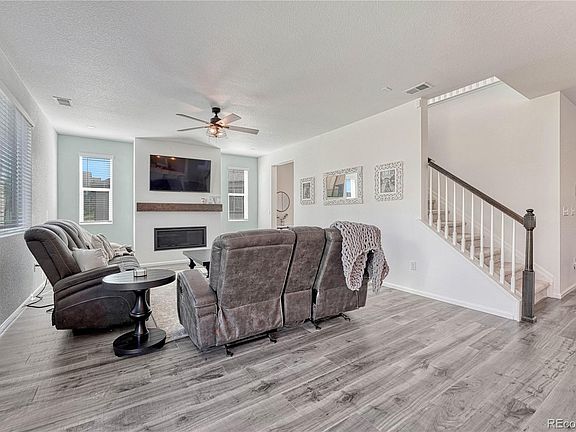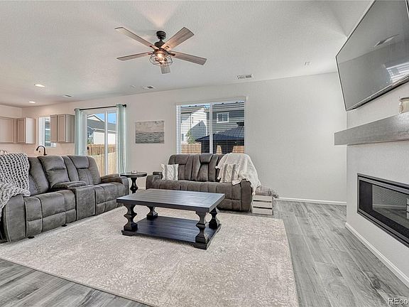Almost new construction in Bella Mesa, located within the desirable Founder's Village community in Castle Rock. This 2-story, 3 bedroom home, with bonus loft and office, is one of the larger floor plans this neighborhood offered. Enjoy our beautiful Colorado weather in the backyard with an oversized, colored concrete patio with attached pergola and low-maintenance turf lawn. The home is well-appointed, light and bright with luxury vinyl plank flooring on the main floor, blinds throughout and updated lighting fixtures. The open kitchen has gray cabinetry, stainless steel appliances, quartz countertops, a farmhouse sink and a large island for entertaining. It's open to a large dining space and family room with fireplace with wood mantle and access to the outdoor living space. The main floor has an office and powder room as well. Upstairs, you'll find a spacious loft, a laundry room with washer and dryer included, 2 secondary bedrooms, a full hallway bath, plus a spacious primary suite with private bath featuring a double vanity, quartz countertops and walk-in closet. Roof was replaced 8/13/24 and comes with transferable warranty. All appliances, furnace, AC and water heater are only 2 years old. Sought after Douglas County Schools. Close to shopping and restaurants, plus tons of options for recreation...enjoy everything Castle Rock has to offer!