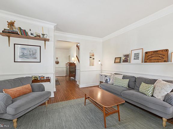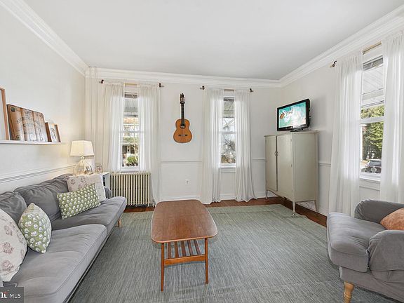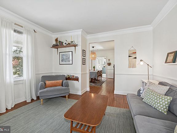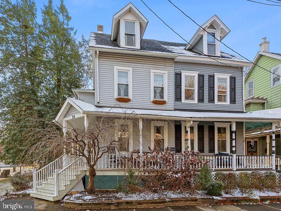 Don't miss this charming "in-town" twin within walking distance of everything! Enter the dining area from the handsome wrap-around porch. The open floorplan features an an inviting living room with large windows at the front of the house. Overlooking the back yard is the spacious eat-in kitchen which has been recently renovated and offers plenty of counter space, cabinetry, and built-in seating. There is a convenient side entry into kitchen and a brand new powder room on the main level. Newer Andersen (tilt-in) windows throughout the house bring in a lot natural light, as there is not a house next door. Upstairs you will find an updated full bathroom, two large bedrooms, and a smaller one which is currently used as an office. The third floor is bright, sunny, and nicely finished as the primary bedroom. There is central air on 2nd and 3rd floors, which keeps main level very comfortable. Plenty of extra storage can be found in the full dry basement with french drain and sump pump. Enjoy relaxing outdoors on the front porch or the large deck out back. This home is truly MOVE IN READY with low taxes and great schools!