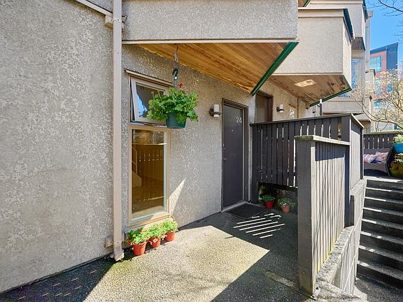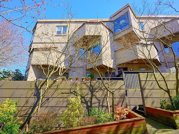 FAIRVIEW, VANCOUVER - This 2-level townhouse-style condo boasts an oversized 1 bedroom and a delightfully spacious west-facing sunset patio. The entry level features the kitchen, large bedroom, and bathroom while upstairs awaits a sun-filled living room with a large feature window offering some city and mountain views through beautiful greenery. Rentals and pets allowed, including one cat or dog. Close to the Laurel Street overpass to Granville Island, Dog park, transit, shopping & everything Cambie St & West Broadway have to offer, PLUS the NEW Broadway Subway Station at Laurel & Broadway.