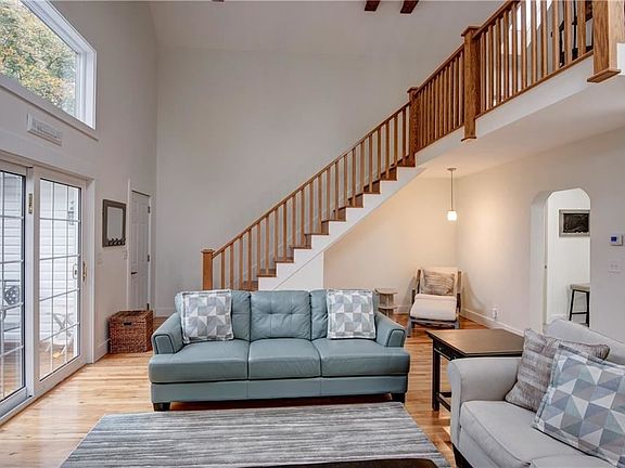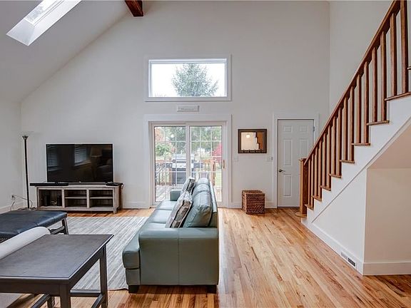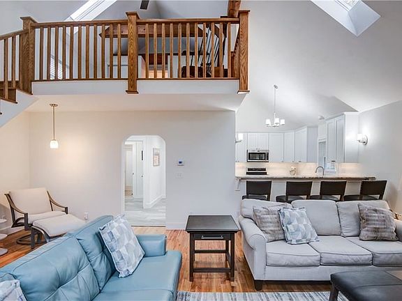 Prepare to be impressed with this Village of Skaneateles home. From the moment you enter the home, you'll notice beautiful hardwood floors and the welcoming front porch. As you pass through the dining and enter the back of the home, the recently remodeled kitchen has gorgeous granite countertops, stainless steel appliances, tons of cabinets for storage and beautiful tiled flooring. The kitchen opens up to a lofted living room with lots of natural light with sliders out to the deck, wooden ceiling beams that add tons of character, and the 2nd staircase leading to the upstairs loft. The home has 2 full bathrooms that have been thoughtfully remodeled with gorgeous granite and tiled floors. The upstairs has tons of character with sliding barn doors, a loft with skylights, 2 bedrooms, and 2 staircases. The attached 1 car garage has storage and also has a door leading out to the back yard. All of these amenities and within walking distance to the village!
