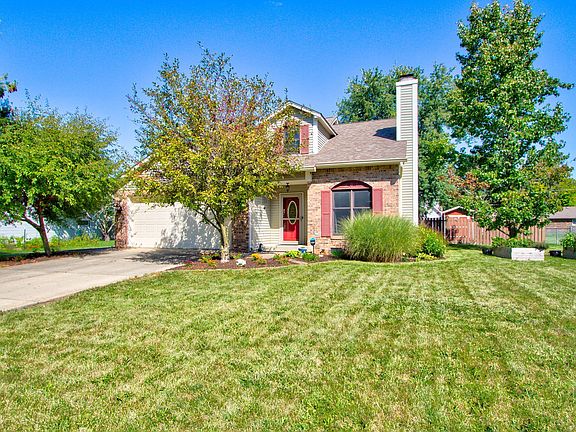 Great open floor plan with soaring ceiling in entryway and great room! 4BED/2.5 BA featuring Main floor primary suite! Convenient location and Pendleton Schools! Stainless steel appliances stay, Tile flooring in the kitchen, Newer Furnace/AC, Roof/gutters, well pressure tank, upstairs carpets will be cleaned prior closing and seller willing to negotiate flooring allowance for main level (great room and master). Enjoy the large fully fenced back yard with your very own basketball court. New Shed 2020, fire pit and concrete patio. SimpliSafe & Nest doorbell & thermostat stay and monitoring can transfer to new buyer. Don't miss out on this great home!